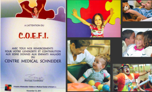 Novembre 2011, le COEFI s'est associé à la troupe de théâtre Perles de Vie(qui compte parmi ses acteurs plusieurs membres du bureau COEFI), pour aider les enfants démunis de l'Hôpital Schneider de Petah Tikvah, par l'intermédiaire de l'association "Friends of Schneider Children".